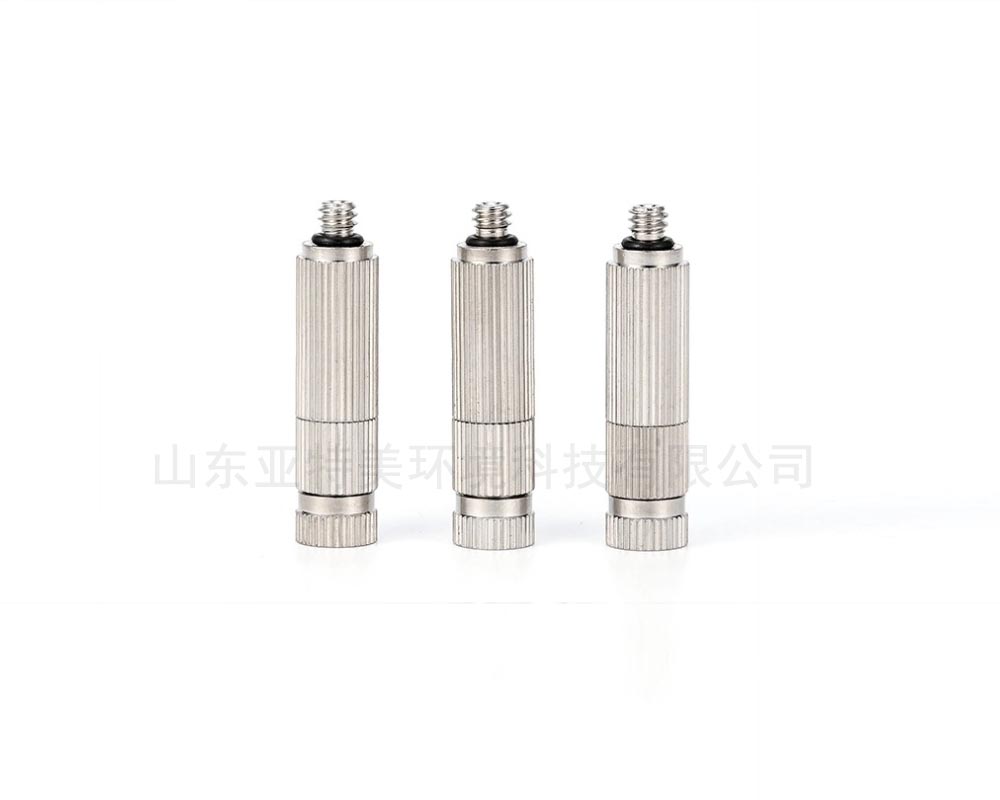 高壓霧化噴嘴采用黃銅主體,內鑲不銹鋼噴嘴芯和不銹鋼導流葉片,內含防滴漏裝置,液體在10Kg-70kg的水壓之下,高速流動(dòng),在導流葉片中形成一個(gè)離心旋渦,從高壓霧化噴嘴噴孔中噴出極細微的空心式霧粒。高壓霧化噴嘴使用特氛龍灘網(wǎng),霧粒粒徑僅為3-5微米,此種高壓霧化噴嘴噴孔是使用美國打孔機打孔,孔徑在0.1mm—0.5mm 之間,高壓霧化噴嘴的自由組合,可以有效的調節加濕量和噴霧效果。該高壓霧化噴嘴的特點(diǎn)是不易堵塞,耐磨性好,噴霧均勻,可以有效的提高產(chǎn)品的質(zhì)量和生產(chǎn) 效率,制作精良,使用成本低廉。
